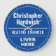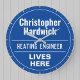 Fun Commemorative Style Wall Plaque Gift in the form of a Wall Clock for a Heating Engineer. Blue and white plaque. Edit the design to change the wording to suit the gift recipient.