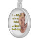 I chose gold plated so that the metal would not react with my skin oils and perspiration. But, I changed the necklace from the gold plated one to a sterling silver. My skin cells will tarnish the silver. But it will not look as bad if some portion of the gold plated necklace somehow became compromised. Zazzle did a find job turning the picture into a pendant for me. As you can see, the colors and the printing of the final product, match the preview. The picture I took is not very clear. But I am pleased with the product I received.
