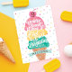 Unique, fun, colourful ice cream cone scoop kids birthday party themed birthday card design. Designed in fun colourful pink, yellow and teal with a confetti, sprinkles and polka dot design pattern. Add uniqueness to your little ones birthday celebration with this unique ice cream cone scoop birthday card design. Fun typographic message "You're Sweet! Have a Cool & Chill Birthday" The name can be changed for a unique personalized birthday card design. You can also add the birthday recipients age within the cherry onto of the ice cream cone. We have a wide selection of matching birthday items for this ice cream parlour birthday party theme.