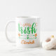 Fun mug to show your Irish pride with "Irish" in a stylish green script, orange and green hearts and flourishes and your monogram name in an orange script.