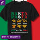 Fun Italian BASTA PASTA Said No-One Ever T-Shirt with CUSTOMIZABLE TEXT, designed with a selection of popular pasta and bold typography saying BASTA PASTA (That's enough pasta) and SAID NO-ONE EVER. The wording is created in the colors of the Italian flag – green, white and red, You can PERSONALIZE the bottom text, which reads YOU CAN NEVER HAVE ENOUGH PASTA, by adding your name or other fun text (or delete). A fun, lighthearted pasta t-shirt to tell everyone how much you love pasta. This would make a great gift for pasta-loving family and friends to celebrate National Pasta Day or World Pasta Day (both in October). Also in white. Matching gifts available.