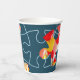Fun Jigsaw Puzzle Motto Custom Accent Image 8oz Paper Cups, feature a partial close-up of jigsaw puzzle pieces with a custom image on top, adding a personal touch. Replace it to set an accent or to reflect the party theme. In the center is a placeholder for the sample text "Happy Birthday, Jayden! and the party celebration date". Any unwanted text placeholder leave empty. All elements are color customizable.