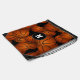 This sporty basketball themed drawstring backpack for boys or girls features a pattern of varied size basketballs turned every which way on a customizable black background - personalize the athlete's monogram - by katz_d_zynes