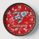 Colourful kids graphic wall clock designed by exclusively by Sarah Trett. Customise with the long name of your choice, this example reads Christopher. Would be a great personalised addition to your child's space themed bedroom.