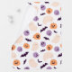This design features a playful and colorful Halloween pattern with a minimalist design. The pattern includes simple, rounded shapes of jack-o'-lanterns, ghosts, skulls, and bats, all scattered across a white background. The color palette is soft yet vibrant, with pumpkins in shades of orange, ghosts in pale peach, skulls in lavender, and bats in deep purple. Each element has a cute and friendly expression, making the pattern fun and lighthearted, perfect for Halloween decorations or kids' party themes. The overall design is cheerful and festive, capturing the whimsical side of Halloween.