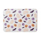 This design features a playful and colorful Halloween pattern with a minimalist design. The pattern includes simple, rounded shapes of jack-o'-lanterns, ghosts, skulls, and bats, all scattered across a white background. The color palette is soft yet vibrant, with pumpkins in shades of orange, ghosts in pale peach, skulls in lavender, and bats in deep purple. Each element has a cute and friendly expression, making the pattern fun and lighthearted, perfect for Halloween decorations or kids' party themes. The overall design is cheerful and festive, capturing the whimsical side of Halloween.