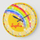 Colourful kids rainbow hues graphic wall clock designed by exclusively by Sarah Trett. Customise with the short letter name of your choice, this example reads Sophia. Would be a great personalised addition to your child's bedroom.