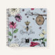 Fun Light Blue Queen Bee & Crown Floral Monogram Notebook