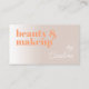 Beautiful elegant minimalist style artistic makeup artist business card. Contemporary light neutral taupe ivory beige brown colored business card with a modern retro and minimalist sunny summer orange and sophisticated classy white font. Click on 'Personalize' to find the template ready to be customized with your unique business name, profession and contact information, text and QR code of your choice. This particular pretty and unique design was made for those who like sophisticated classic strong designs.