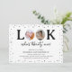 Celebrate in style with our Look Who's Turning 21 Birthday Invitation! This fun and modern design showcases the guest of honor in a unique way: with the word "LOOK" made up of two photos, one from their childhood and one from present day. Trendy calligraphy script and playful polka dot confetti frame this eye-catching announcement, setting the tone for an unforgettable celebration. Don't miss out on the fun - mark your calendar for the big day and join us as we toast to 21 years of amazing memories!