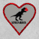 Fun design features T-Rex dinosaur silhouette with red heart in mouth and "loveosaurus" text on light gray background