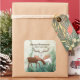 On our holiday-themed sticker/envelope seal, a chocolate-colored woodland moose and a lovely white and gray deer stand against a watercolor winter green background filled with delicate white snowflakes. Text on the sticker says says: "Merry Christmoose" and "Happy New Deer." Part of our Merry Christmoose holiday collection.