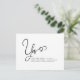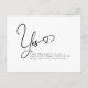 Discover the unique and eye-catching non-photo save the date postcards beautifully crafted with bold and creative typography. Each card highlights the elegantly scripted word "Yes," with a wedding ring gracefully dangling from the final letter "s." These cards are an ideal choice for announcing your special day with elegance and a unique flair.