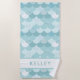 Get ready for the beach with this fun and modern style beach towel. This design features a cute mermaid pattern in shades of blue green and white. Personalize this towel for the beach or swimming with the name of your choice. The font and color of the text are customizable.