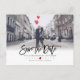 Fun and Funky, Modern Brush Script Save our Date postcard, a red heart with DIY Background color.
