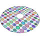 Modern Christmas tree skirt featuring an array of multicolored circles in shades of green, purple, gold, turquoise, blue, and more. Designed by Heard_, © Susan M. Silva .