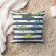 Brighten up any space with this fun and modern floral throw pillow. Green, teal and lime colored tropical flower leaves with graphic stripes are on the front and back of this throw pillow.