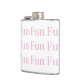 This small flask is really cute. Good for taking water or other liquids with you. My only complaint is the top is somewhat difficult to get back on after you screw it off. The printing is really good on the flask. My design came out just right!
