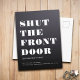 SHUT THE FRONT DOOR! (of our new place) Funny typography based design for a moving announcement postcard. Minimal and modern, this black and white, easily customizable change of address notice will make it quick and stylish to share the news of your new address! This is the grey gradient version.