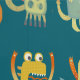Fun little monsters on a teal green background to make you smile. Perfect for a child’s nursery, bedroom or playroom. Original art by Nic Squirrell.