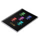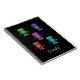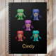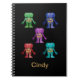 Send your child or grandchild back to school in style with this slightly geeky but oh so fun multi-color robots notebook. This design features a colorful array of robots in blue, green, purple, and red with gold accents against a black background. Other designs, with just one robot and with the child's name, are also available.
