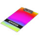 This clipboard design features a fun, rainbow-like multicolored gradient pattern featuring various shades of colors like yellow, orange, red, pink, purple, blue and green. It also features a custom name.