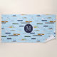 Let's anchor at the island beach for a swim! This unique boating themed monogrammed beach towel features a pattern of varied size seafaring vessels on a light blue background - the pattern includes 2 cargo ships, 2 sailing vessels, 2 antique-style wood boats, 1 fishing boat, a rowboat and a houseboat - close inspection of the pattern reveals people enjoying a day on the river - "A Day On the River" © katz_d_zynes 2020