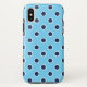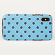 Protect your iPhone X with an impact resistant Case-Mate Tough case featuring a fun geometric pattern of white bordered dark blue polka dots on a sky blue background.