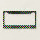 Colorful license plate frame done in black with neon colored polka dots. Customize to add your own text.