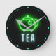 Fun decorative tile design features neon green teapot with "Tea" neon text on black background and aqua clock face