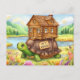 Send a charming announcement with our unique New Address postcard featuring a delightful illustration: a cozy home perched snugly atop a turtle's back, ambling leisurely through a picturesque field by a serene pond. This whimsical image perfectly captures the feeling of moving at your own pace and finding tranquility in new surroundings.