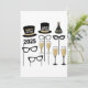 "Set the tone for an unforgettable New Year’s Eve celebration with this chic 2025-themed invitation card! Featuring a glitter-inspired design of photo booth props, including 'Happy New Year' hats, masquerade masks, champagne glasses, and party hats in an elegant black and gold color scheme. Perfect for inviting guests to your countdown party, holiday gathering, or 2025 celebration, this stylish card adds a festive touch to your event planning. Make your New Year’s Eve party stand out with these eye-catching invitations!"