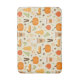 This design showcases a delightful fall-themed pattern filled with cozy autumn elements. The design includes illustrations of pumpkins, slices of pumpkin pie topped with whipped cream, warm fall beverages in to-go cups, and butternut squash. Scattered among these are cinnamon sticks, star anise, sprigs of greenery, autumn leaves, acorns, and small berries, all set against a soft cream background. The pattern exudes a warm and inviting atmosphere, perfect for celebrating the flavors and colors of the autumn season.