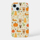 This design showcases a delightful fall-themed pattern filled with cozy autumn elements. The design includes illustrations of pumpkins, slices of pumpkin pie topped with whipped cream, warm fall beverages in to-go cups, and butternut squash. Scattered among these are cinnamon sticks, star anise, sprigs of greenery, autumn leaves, acorns, and small berries, all set against a soft cream background. The pattern exudes a warm and inviting atmosphere, perfect for celebrating the flavors and colors of the autumn season.