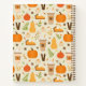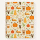 This design showcases a delightful fall-themed pattern filled with cozy autumn elements. The design includes illustrations of pumpkins, slices of pumpkin pie topped with whipped cream, warm fall beverages in to-go cups, and butternut squash. Scattered among these are cinnamon sticks, star anise, sprigs of greenery, autumn leaves, acorns, and small berries, all set against a soft cream background. The pattern exudes a warm and inviting atmosphere, perfect for celebrating the flavors and colors of the autumn season.