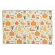 This design showcases a delightful fall-themed pattern filled with cozy autumn elements. The design includes illustrations of pumpkins, slices of pumpkin pie topped with whipped cream, warm fall beverages in to-go cups, and butternut squash. Scattered among these are cinnamon sticks, star anise, sprigs of greenery, autumn leaves, acorns, and small berries, all set against a soft cream background. The pattern exudes a warm and inviting atmosphere, perfect for celebrating the flavors and colors of the autumn season.