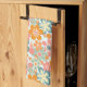 Bring a bit of fun and color to your oven door with this cheerful retro flower pattern kitchen towel. This design features the colors of pink, green, and orange on a very pale blue background.
