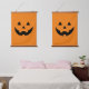 Cute orange and black Jack o lantern pumpkin face spooky scary funny cute Halloween Sign decorations. Set of two Halloween Hanging Tapestries.