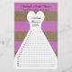 This fun bridal shower word game is a word game with the names of the bride and groom as the focal point. Guests try to see how many words they can make out of the couple's names. The design features alternating orchid and burlap stripes on the front where a bridal gown sits with space to write words. The beautiful orchid color continues on the back of the game. Copyright henishouseofpaper