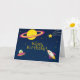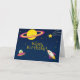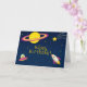 This modern fun outerspace rocket girl greeting Card with a rocket ship and planet on a dark blue star filled sky background is the perfect for any birthday party or special event in style. Personalize with your own special text, and use it for the party or event of your choice. Some Graphics by Prettygrafik design at store etsy.com/shop/Prettygrafikdesign
