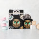 Fun Owl Pattern on Black Background Wrapping Paper