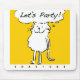 Cat theme mousemat. A fun smiling cartoon cat tells the world, "Let's Party!". Gift for a cat owner or cat lover.