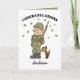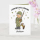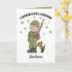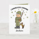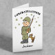 A simple military passing out greeting card featuring a cartoon image of a soldier with a dog and scattered stars, the word "congratulations", and the name of the soldier. The font styles, sizes and colors can be changed by clicking on the customize further link after personalizing.