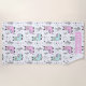 Cute beach towel for a girl with blue & pink Llama Pattern set on a white background. Easy to personalize with your name!