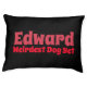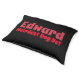 Dog cushion bed in black and red , personalize the fun text to any name or message, or text is removable. The black background and text can be switched to any color choice.