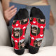 These fun photo of boyfriend for girlfriend red socks feature your own photo and white hearts on a red background and are sure to bring your girlfriend a smile! She will think of you every time she pulls on these socks, and will love them almost as much as she love you! This is a great gift for Valentine's day, or as a Christmas stocking stuffer! Background color us customizable.