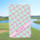 This fun golf towel has a diagonal fleet of little pink golf carts and an editable name on a green background. Give it to the lady golfer in your life who wants to keep her clubs clean in style.