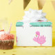 Hot pink fun flamingo standing in a puddle of water. Personalize with Birthday child's name and age.