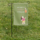 Flag bracket is super easy to assemble. There is a prong fork that goes into the ground. I dug a shallow hole to bury the prongs and still had enough height. Reinforced stitching on for the flag opening. Colors are true to the website. Mona Lisa's sign with the text is easy to read, the text is clear and not blurry.