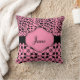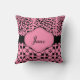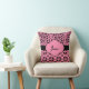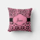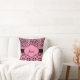 Cool hot pink and black pillow is divided into two sections, one part has a wild animal print, the other half has a cool floral design. In the center, a medallion for you to add your text to...on BOTH sides!